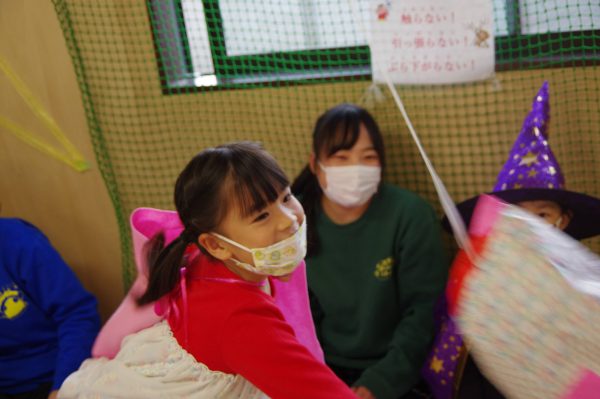 当日は、17人の子どもたちと16人の大学生リーダーたちが集まり、にぎやかに楽しい時間を過ごすことができました。前半はハロウィンパーティーに向けて、それぞれ思い思いのピニャータを作りました。こだわりのあるピニャータがそれぞれ完成していました。その後、仮装をしてグループごとにパフォーマンス会、クモの巣くぐりレース、リーダーたちが準備していたピニャータ割りをして元気いっぱい過ごしました。